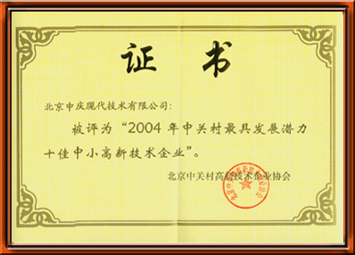 3月10日,“2004年中關(guān)村最具發(fā)展?jié)摿κ阎行「咝录夹g(shù)企業(yè)”推薦活動(dòng)正式揭曉?,F(xiàn)代中慶獲得此項(xiàng)殊榮,副總經(jīng)理劉禾參加了頒獎(jiǎng)儀式。