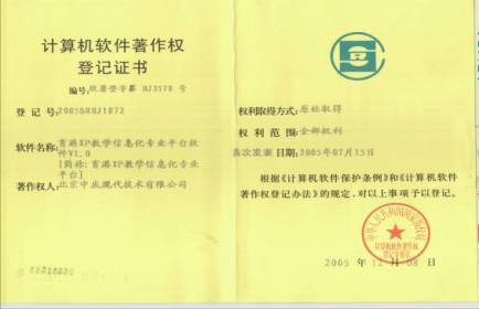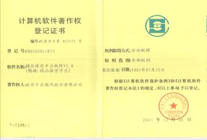 經中國版權保護中心批準,現(xiàn)代中慶軟件新品——育港XP教學信息化平臺軟件、精品課堂平臺軟件、監(jiān)控管理平臺軟件等三項,榮獲國家軟件著作權保護。