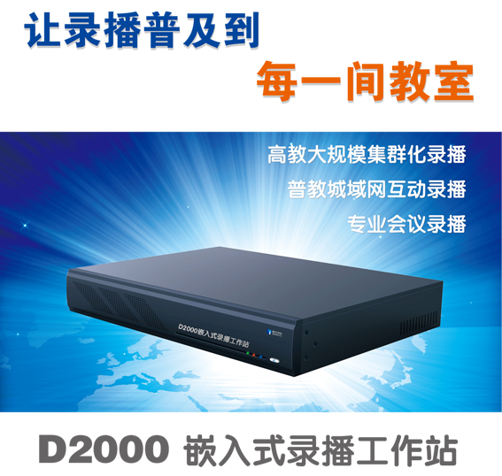 此次在高教會(huì)上全國(guó)首發(fā)的以D2000嵌入式錄播工作站為核心的嵌入式錄播系統(tǒng)集嵌入式技術(shù)和錄播應(yīng)用之大成,以嵌入式技術(shù)架構(gòu)特有的高穩(wěn)定、低功耗,配合強(qiáng)大的音視頻處理平臺(tái)一舉突破了傳統(tǒng)錄播平臺(tái)的局限,“讓錄播普及到每一間教室”。