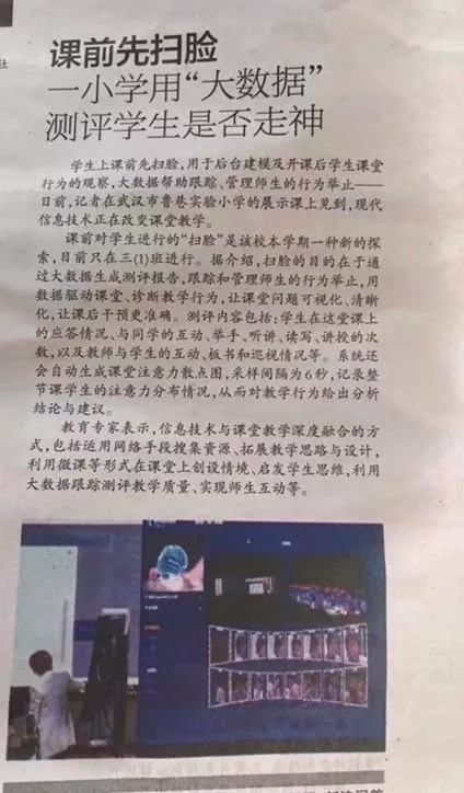 上圖為長(zhǎng)江日?qǐng)?bào)的報(bào)道內(nèi)容,大數(shù)據(jù)真的就只能測(cè)評(píng)學(xué)生是否走神?