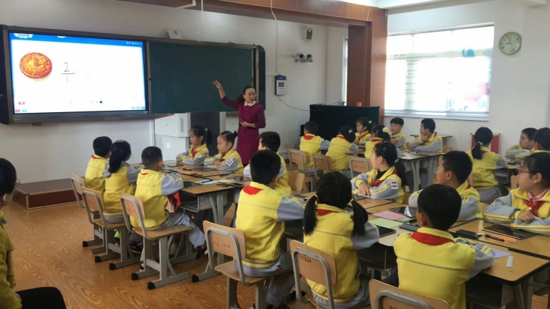 在《分?jǐn)?shù)的認(rèn)識(shí)》這一課例展示中,南通路小學(xué)郝靜春老師將中慶智課數(shù)據(jù)評(píng)價(jià)引入課堂教學(xué)中,學(xué)生的個(gè)性化學(xué)習(xí)數(shù)據(jù)被記錄,郝老師可以根據(jù)每個(gè)學(xué)生的數(shù)據(jù)特點(diǎn)展開有針對(duì)性的教學(xué)。課堂中移動(dòng)終端變成課堂動(dòng)態(tài)研究的一部分,郝老師以學(xué)生為中心,運(yùn)用移動(dòng)終端和學(xué)生平板電腦多次進(jìn)行課堂互動(dòng),開展隨堂評(píng)測(cè),注重學(xué)生自主學(xué)習(xí),學(xué)生的動(dòng)手視頻和答題通過(guò)移動(dòng)端拍攝并上傳到一體機(jī)進(jìn)行點(diǎn)評(píng),而所有這些教學(xué)活動(dòng)也成為課堂大數(shù)據(jù)的一部分被中慶智課系統(tǒng)保存。