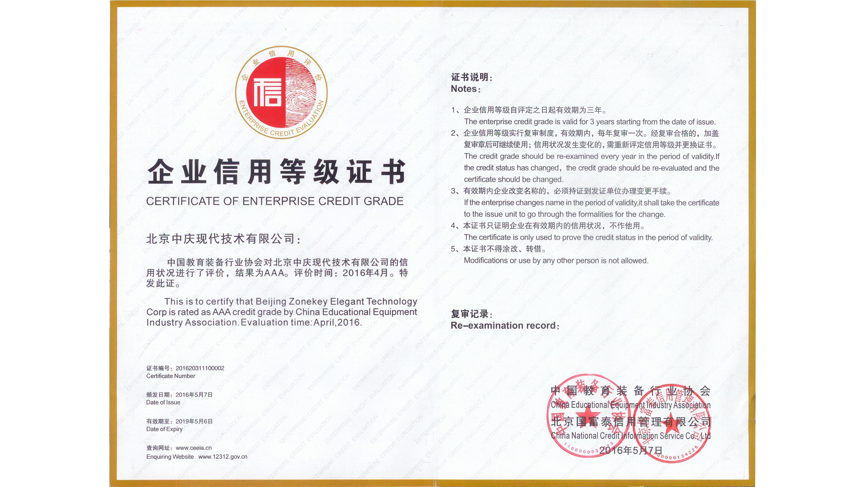 背景: 2015年,中行協組織召開首次中國教育裝備行業信用評價工作會議,旨在加快推進我國社會信用體系建設進程,充分發揮企業在市場經濟中的主體作用,營造誠實、自律、守信、互信的社會信用環境。經地方協會預審、推薦,中行協從近千家參評企業中篩選出49家,作為首批獲評企業,分別授予AAA級、AA級信用稱號! Tip:目前,業內只有46家企業獲得“AAA”級信用企業稱號!