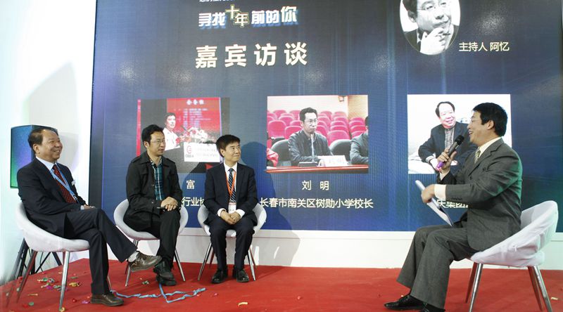 5月8日上午10:30,作為本次系列活動的首發陣容,中國教育裝備行業協會會長王富、長春市南關區樹勛小學校長劉明以及中慶集團董事長宋東茂,一起亮相中慶展位,并由央視名嘴阿憶帶領現場觀展嘉賓,共同走入了中慶十年以上老用戶的暖心訪談之旅。