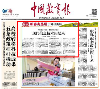 今日,山東昌樂一中再次登上了《中國教育報》的頭條(《現代信息技術用起來——對話山東濰坊市昌樂一中副校長張福濤》),這也是該校第三次榮登《中國教育報》(2014年5月7日“‘洋為中用’的翻轉課堂”、2014年5月19日“求新謀變,翻轉課堂迎勢而上;穩步推進,課改之舟揚帆遠行”)。在接收記者采訪中,昌樂一中副校長張福濤對記者說,借助信息技術的力量,學生自學能力差、老師技術水平、學科素養低等諸類問題,都得以一一解決。如今,山東昌樂一中已成為全國翻轉課堂實驗規模最大、實施科目最全的實驗學校。同時,高頻的信息化應用,還創造了中慶錄播系統在整個山東地區使用頻率最高的學校記錄。