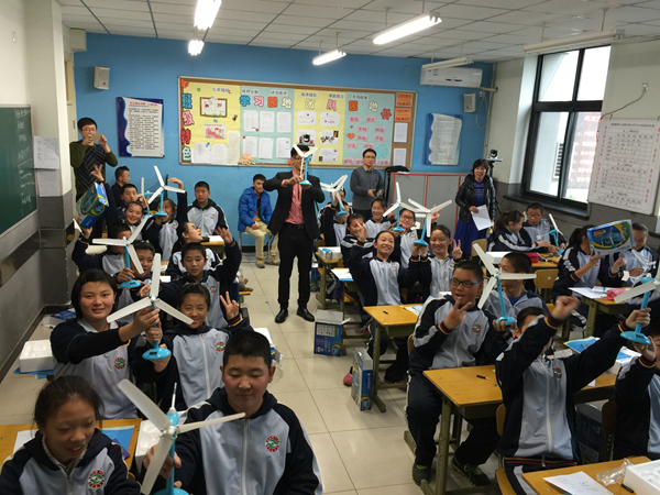 今天下午,現代中慶“送課下校”,在北京市朝陽區教育研究中心附屬學校,開啟了一堂主題為《可替代能源——風能發電》的科學實踐課。