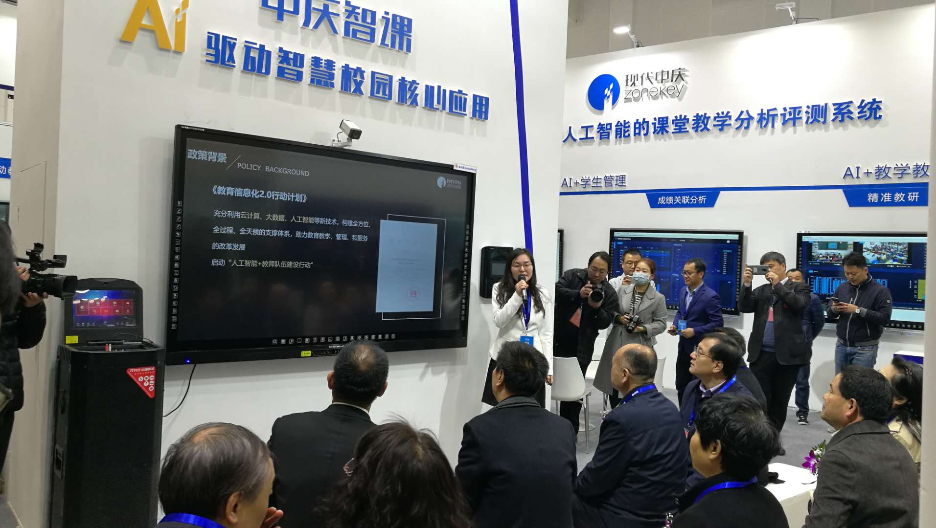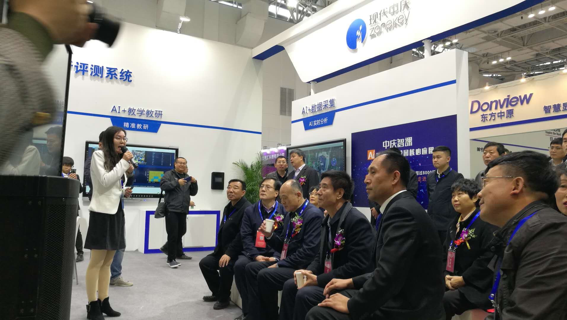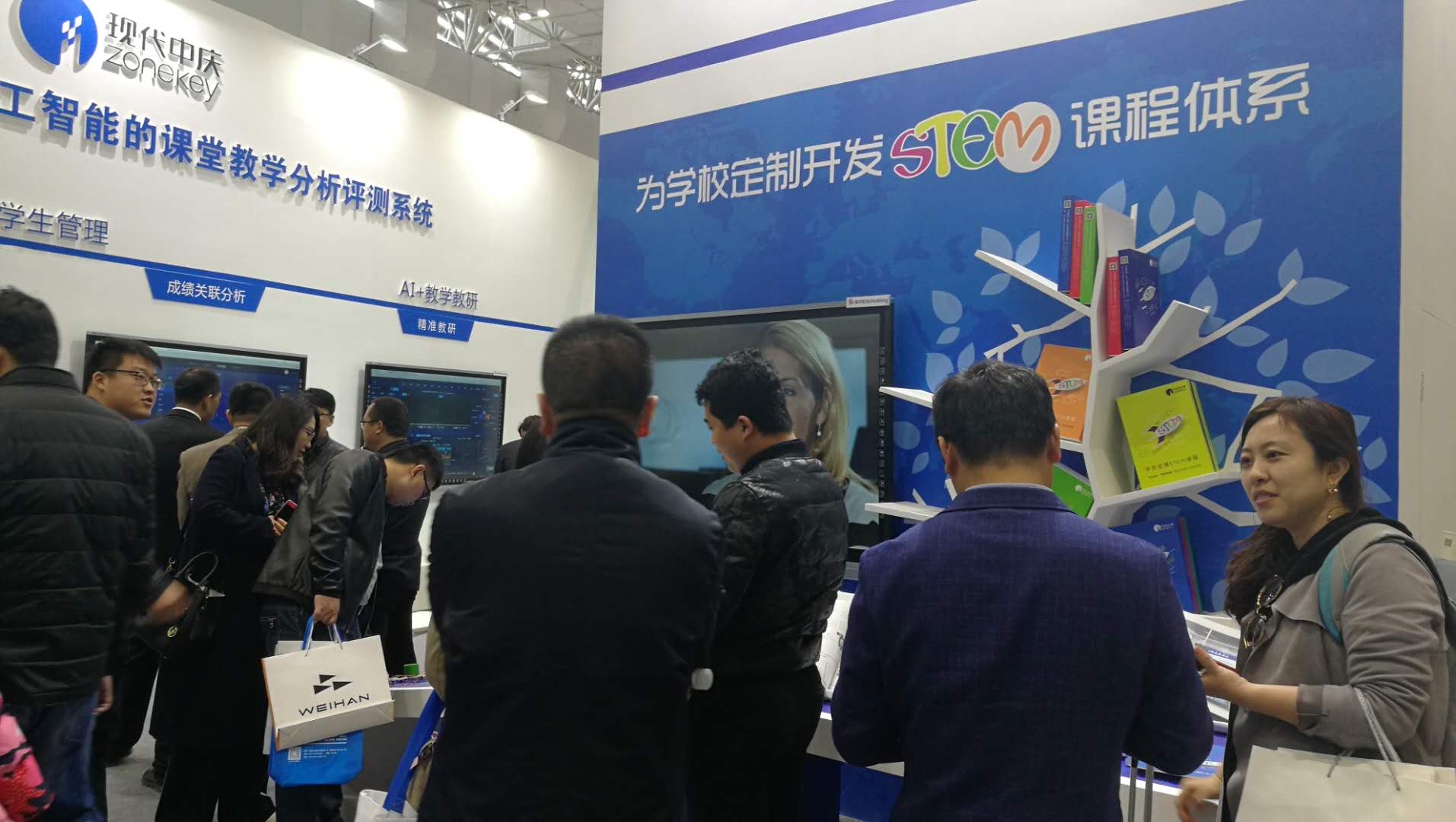 中慶展會(huì)現(xiàn)場(chǎng),人氣火爆。中國(guó)教育裝備行業(yè)協(xié)會(huì)會(huì)長(zhǎng)王富、河北省教育裝備中心處長(zhǎng)郭晉寶等多位領(lǐng)導(dǎo)蒞臨中慶展位參觀體驗(yàn),并對(duì)中慶人工智能+教育給予高度好評(píng)。