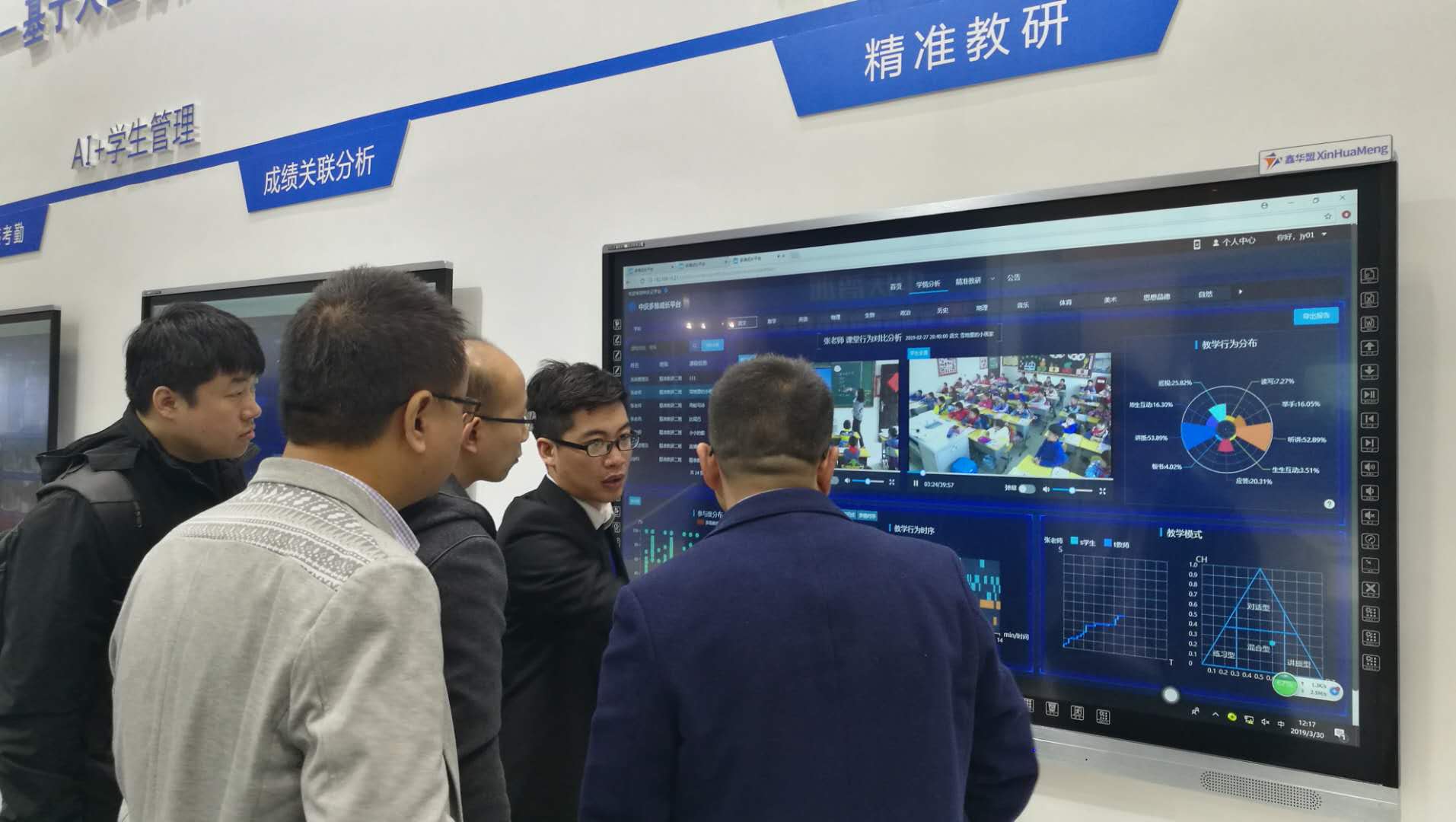 中慶展位上,為了讓嘉賓們更好的體驗(yàn)智課應(yīng)用,中慶設(shè)有專門(mén)的體驗(yàn)區(qū)。參展嘉賓能直接看到在常態(tài)化教學(xué)中,智課系統(tǒng)生成的分析報(bào)告。報(bào)告包含教師講授時(shí)間和學(xué)生參與度的關(guān)系、巡視多少次能有效提高學(xué)習(xí)效果、課堂異常數(shù)據(jù)等。這些數(shù)據(jù)幫助教師直觀的發(fā)現(xiàn)教學(xué)模式、教師能力提升、學(xué)生學(xué)習(xí)成績(jī)變化的規(guī)律。教研老師借助課堂大數(shù)據(jù)可以常態(tài)開(kāi)展教研活動(dòng),不斷獲得專業(yè)技能成長(zhǎng)。智課這一應(yīng)用獲得在場(chǎng)眾多教師嘉賓的青睞。