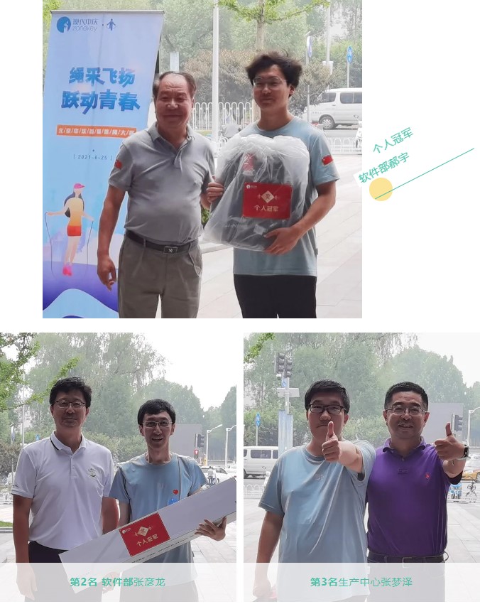 頑強(qiáng)拼搏顯英姿,軟件部門的郝宇以每分鐘213次的成績(jī)勇奪冠軍,軟件部張彥龍、生產(chǎn)中心張夢(mèng)澤分別以199次和196次的優(yōu)異成績(jī)榮獲亞軍和第三名。