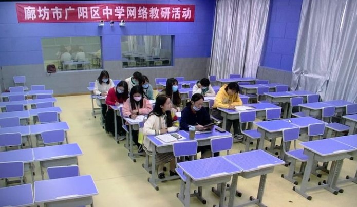 2021年10月14日,河北省廊坊市廣陽區(qū)開展了一場別開生面的中學(xué)網(wǎng)絡(luò)教研活動。根據(jù)廣陽區(qū)教體局工作安排,在廊坊市第九中學(xué)新近部署的現(xiàn)代中慶錄播教室中,第九中學(xué)和區(qū)內(nèi)尖塔中學(xué)通過互聯(lián)網(wǎng)成功實(shí)現(xiàn)遠(yuǎn)程同上一堂課,線上線下同步教研活動的開展。