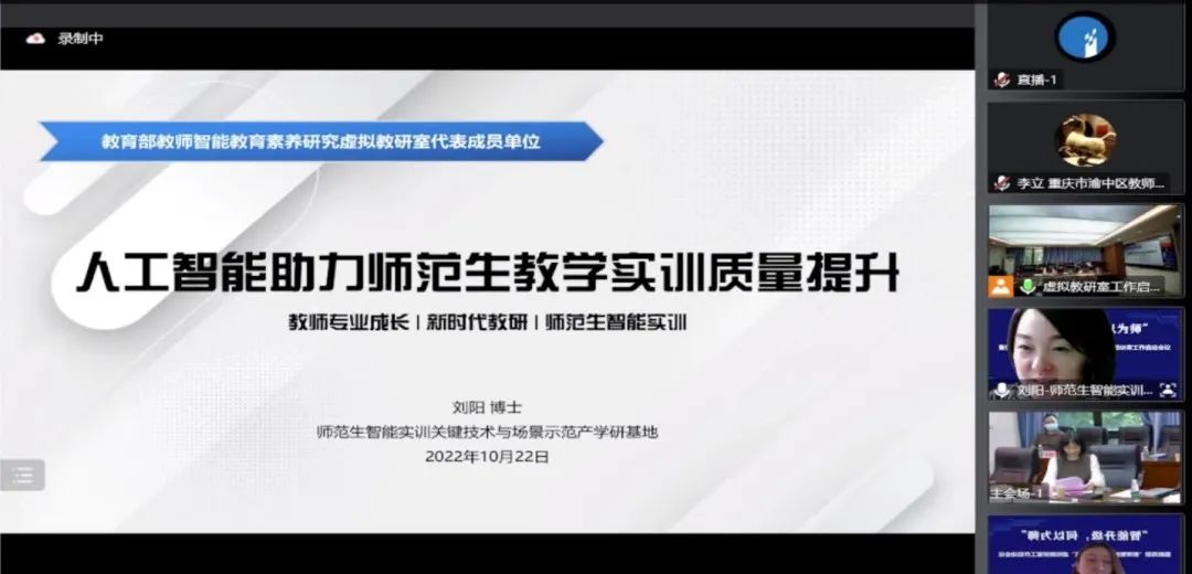 10月22日,由教育部高等學(xué)校教育技術(shù)專業(yè)教學(xué)分委員會(huì)指導(dǎo),華南師范大學(xué)教育人工智能研究院、教育信息技術(shù)學(xué)院聯(lián)合主辦的“智能升級(jí),何以為師”暨教育部“教師智能教育素養(yǎng)研究”虛擬教研室工作啟動(dòng)會(huì)在華師召開(kāi)。會(huì)議采用“線上+線下”聯(lián)動(dòng)方式,現(xiàn)場(chǎng)全程同步直播,在線參會(huì)和線上直播觀會(huì)的人數(shù)最高達(dá)17196人。現(xiàn)代中慶作為技術(shù)支持單位提供全程錄播、直播服務(wù),并代表“師范生智能實(shí)訓(xùn)關(guān)鍵技術(shù)與場(chǎng)景示范產(chǎn)學(xué)研基地”作專題報(bào)告。