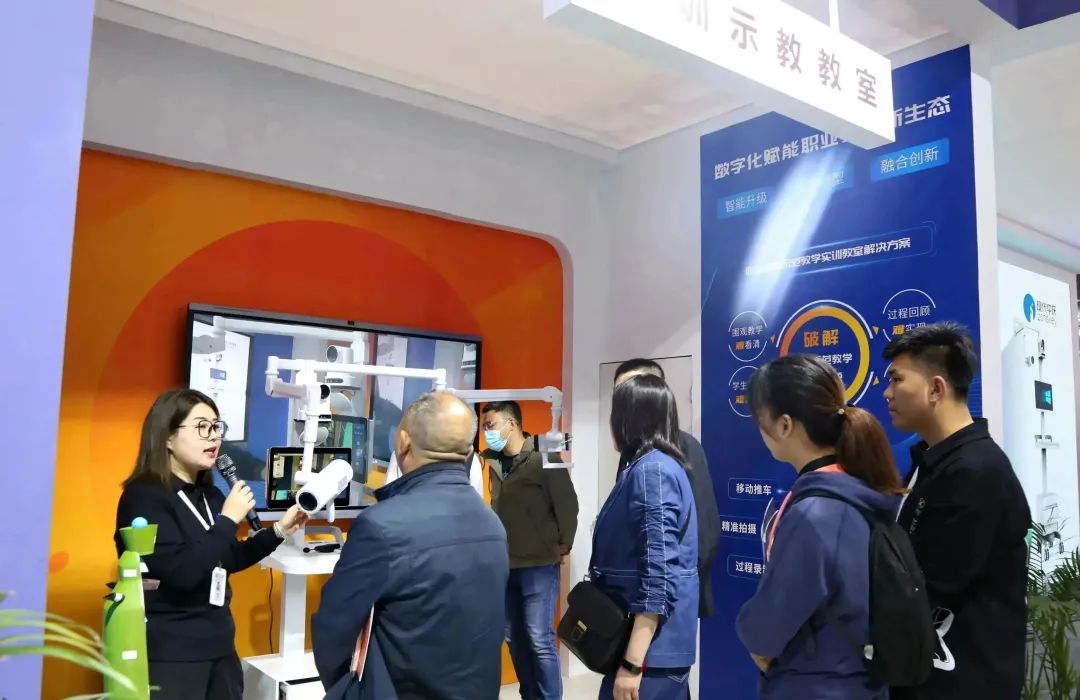 2023年4月8日,第58·59屆中國(guó)高等教育博覽會(huì)(以下簡(jiǎn)稱高博會(huì))在重慶國(guó)際博覽中心隆重開幕?,F(xiàn)代中慶圍繞“Ai助力教室空間建設(shè)”這一主題,搭建具備Ai教學(xué)、Ai教研、Ai督導(dǎo)、Ai實(shí)訓(xùn)、Ai集控等多重職能的教學(xué)空間,破解高水平人才培養(yǎng)的瓶頸問(wèn)題。