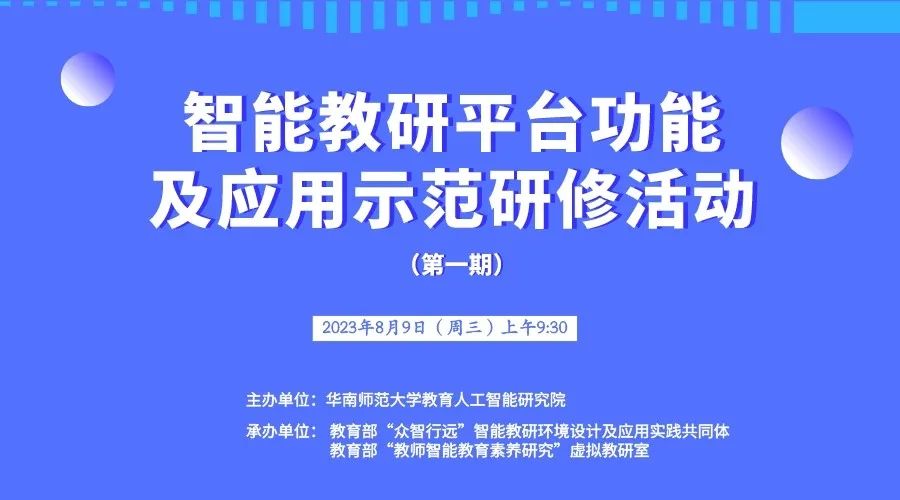 8月9日上午,華南師范大學教育人工智能研究院主持的教育部“‘眾智行遠’智能教研環(huán)境設計及應用實踐共同體”和教育部“教師智能教育素養(yǎng)研究”虛擬教研室共同啟動“智能教研平臺功能及應用示范”主題研討活動(第一期)。