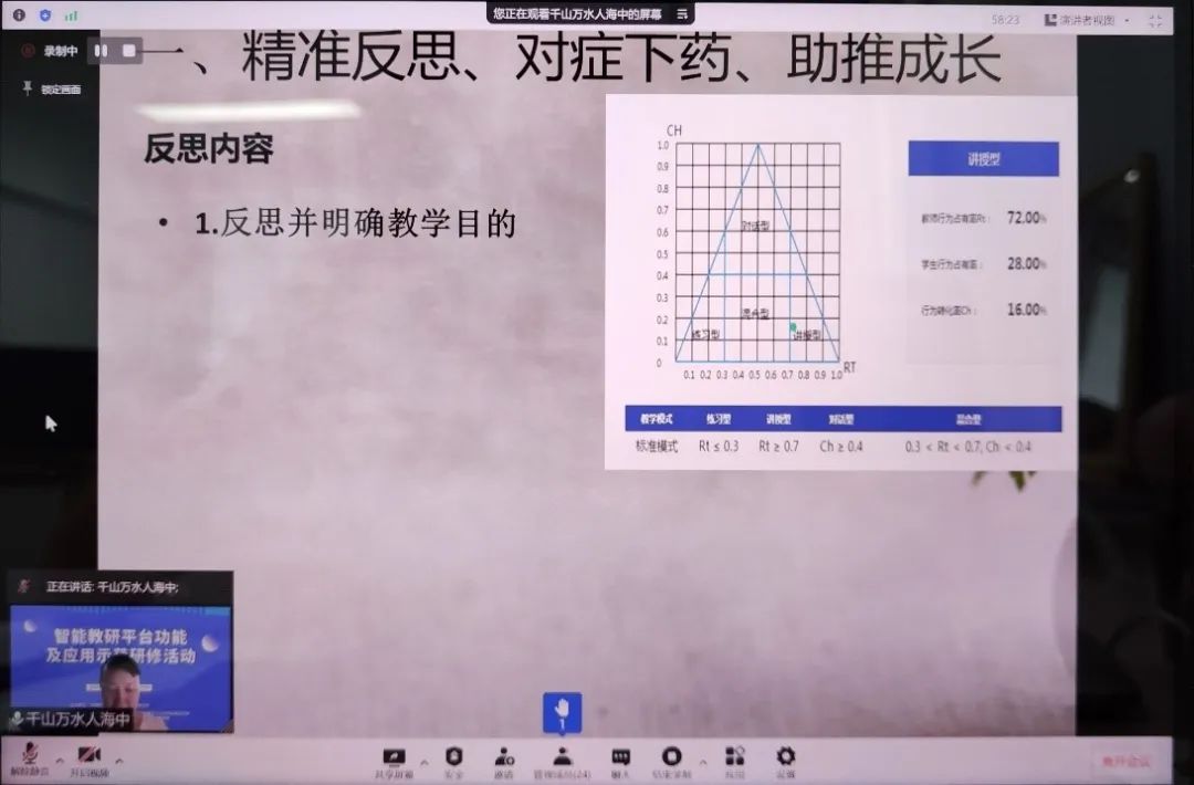 本次研討中,參會成員共同探討融數(shù)據(jù)分析、智能技術、精準教研、教師發(fā)展服務為一體的智能教研平臺設計、開發(fā)與應用。會議直播吸引了1400多名觀眾觀看,參會成員積極發(fā)言,互動熱烈。