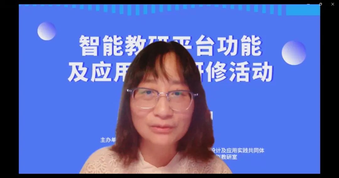 陳琳主任詳細介紹了央館智能研修平臺在一線的實踐應用,分享自己基于央館智能研修平臺形成的“一二三四五”的個人發(fā)展路徑,展現(xiàn)了智能研修平臺對一線教師專業(yè)發(fā)展和賦能教學教研創(chuàng)新的方法與成效。