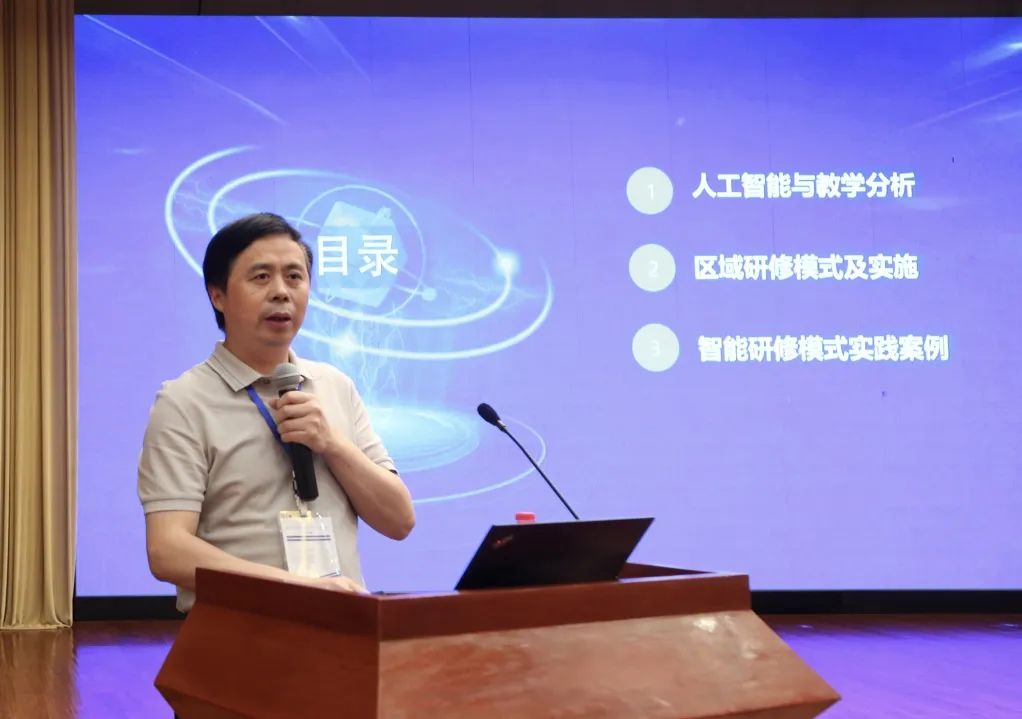 華中師范大學(xué)人工智能教育學(xué)部副部長、教授、博士生導(dǎo)師,中央電化教育館智能研修平臺應(yīng)用試點工作專家組組長劉清堂在其報告《智能技術(shù)支持的區(qū)域教研模式及應(yīng)用》中從“人工智能與教學(xué)分析”“區(qū)域研修模式及實施”“區(qū)域研修模式實踐案例”三個方面結(jié)合智能研修平臺,講解智能技術(shù)支持下的區(qū)域研修的理論基礎(chǔ)、研修模式、平臺操作及具體案例,遵循“理論-實踐-案例”的思路回答人工智能何以賦能教師專業(yè)發(fā)展。