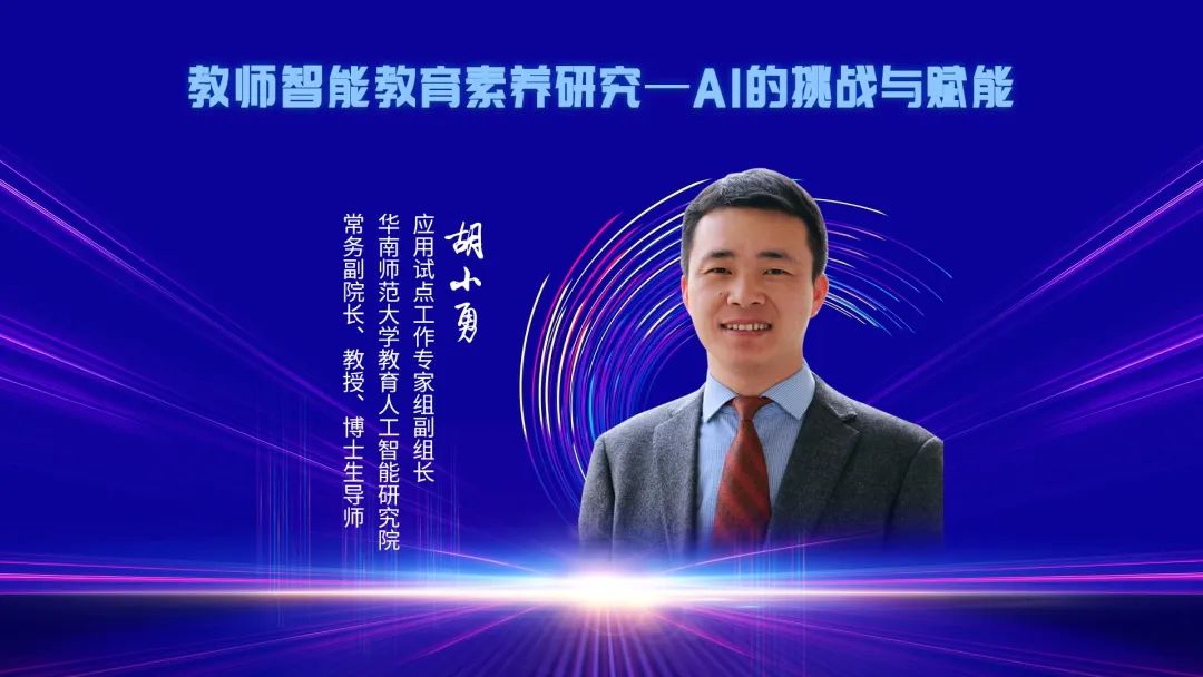 應(yīng)用試點工作專家組副組長、華南師范大學(xué)教育人工智能研究院常務(wù)副院長、教授、博士生導(dǎo)師胡小勇做了題為《教師智能教育素養(yǎng)研究-AI的挑戰(zhàn)與賦能》的報告。胡教授從“教育變革:人工智能有何作用”“教師素養(yǎng):新時期提出新要求”“教研升級:疫情危中有機”三個方面講解了人工智能技術(shù)對教師專業(yè)發(fā)展帶來的影響。