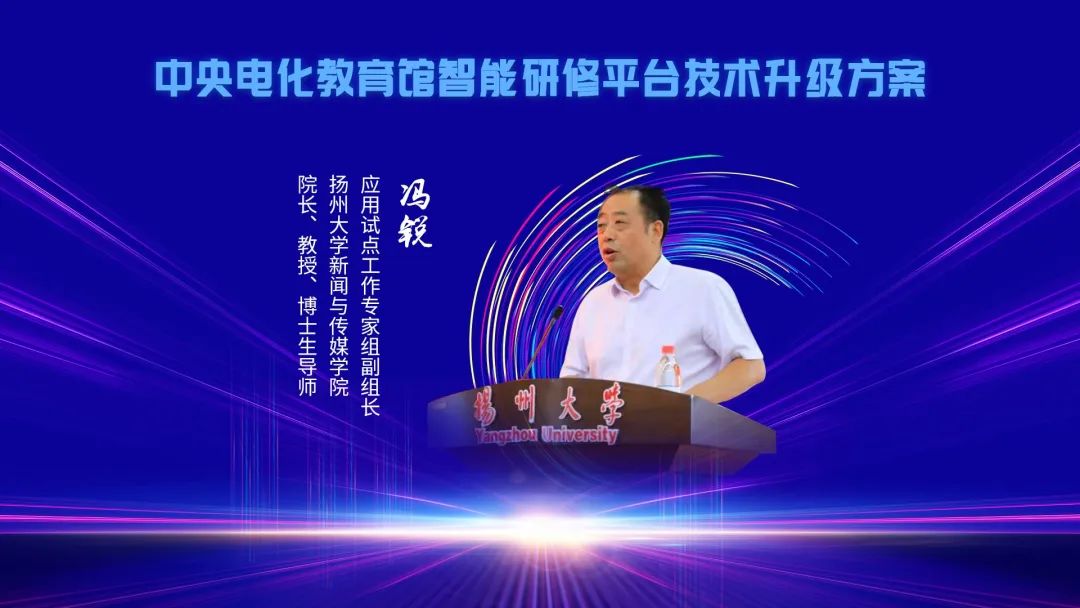 應(yīng)用試點工作專家組副組長、揚州大學(xué)新聞與傳媒學(xué)學(xué)院院長、教授、博士生導(dǎo)師馮銳做了題為《中央電化教育館智能研修平臺技術(shù)升級方案》的報告。馮教授介紹了智能研修平臺升級的必要性與可行性,講解了平臺升級的總體目標(biāo)和服務(wù)架構(gòu),從“備、磨、聽、評、賽”5個視角詳細闡述了平臺升級核心內(nèi)容。