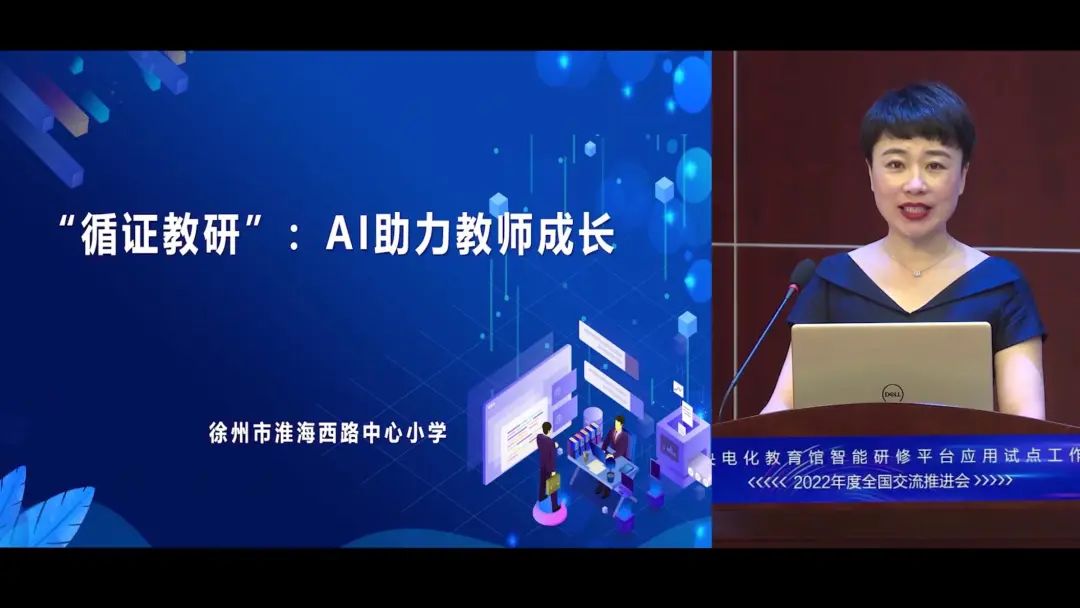 徐州市淮海西路中心小學(xué)展示了該?;谘C思想形成的5A循證校本教研模式,并詳細展示了教師如何在基于智能研修平臺的循證教研中持續(xù)改進,轉(zhuǎn)變角色定位,提升數(shù)據(jù)素養(yǎng),提高教研教學(xué)水平,展示了如何讓教研活動從“經(jīng)驗”走向“循證”,讓課堂改善變得有據(jù)可依,有跡可循。