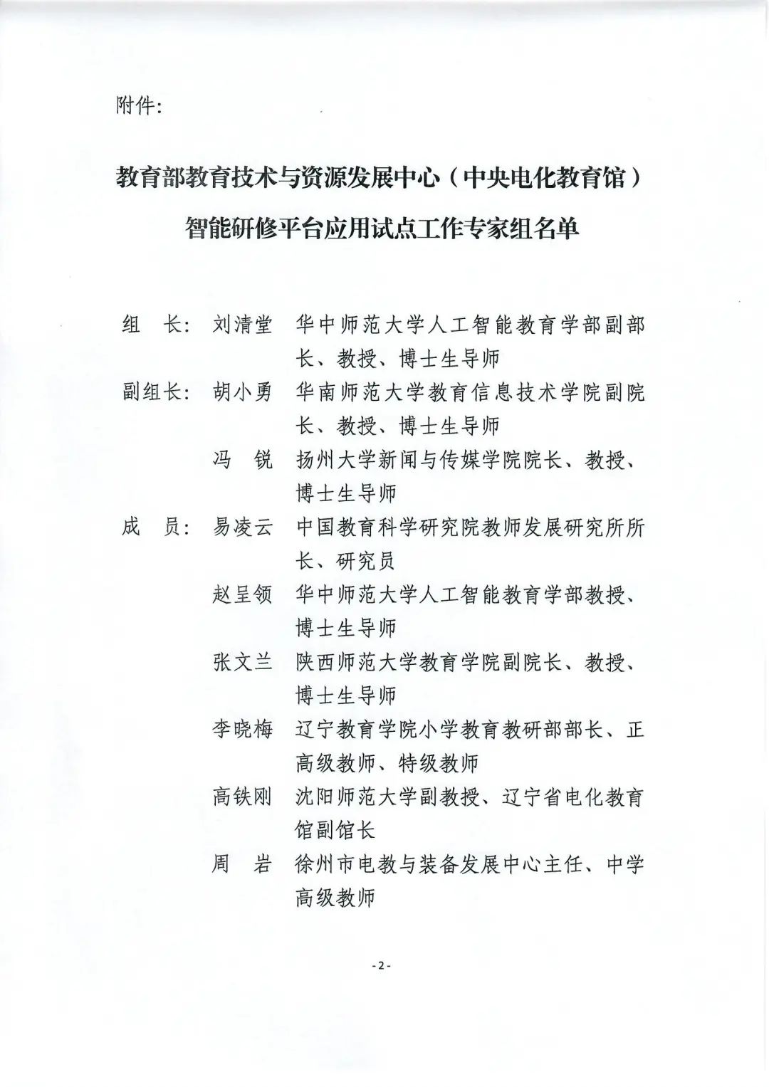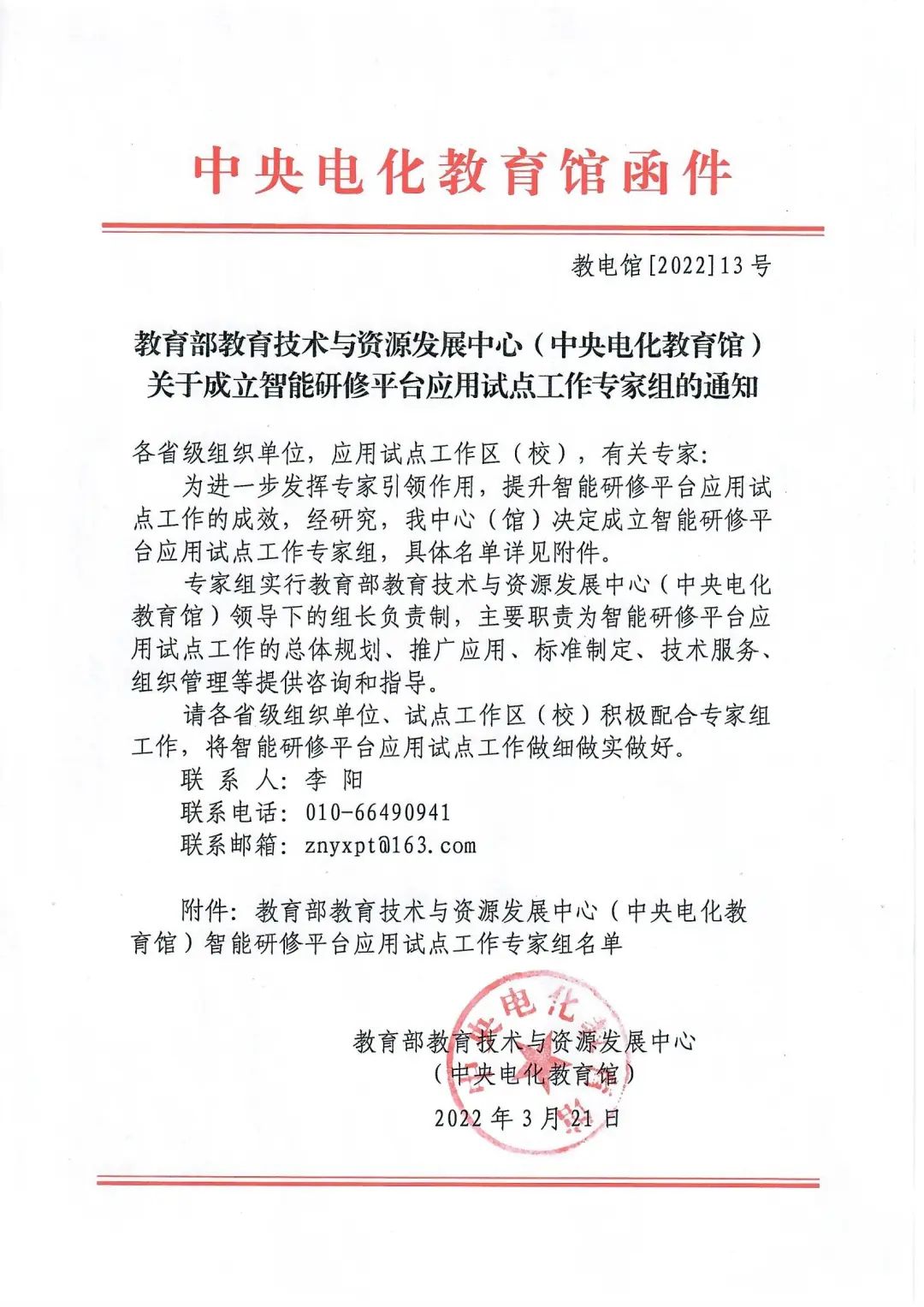 教育部教育技術(shù)與資源發(fā)展中心(中央電化教育館)關(guān)于成立智能研修平臺(tái)應(yīng)用試點(diǎn)工作專家組的通知