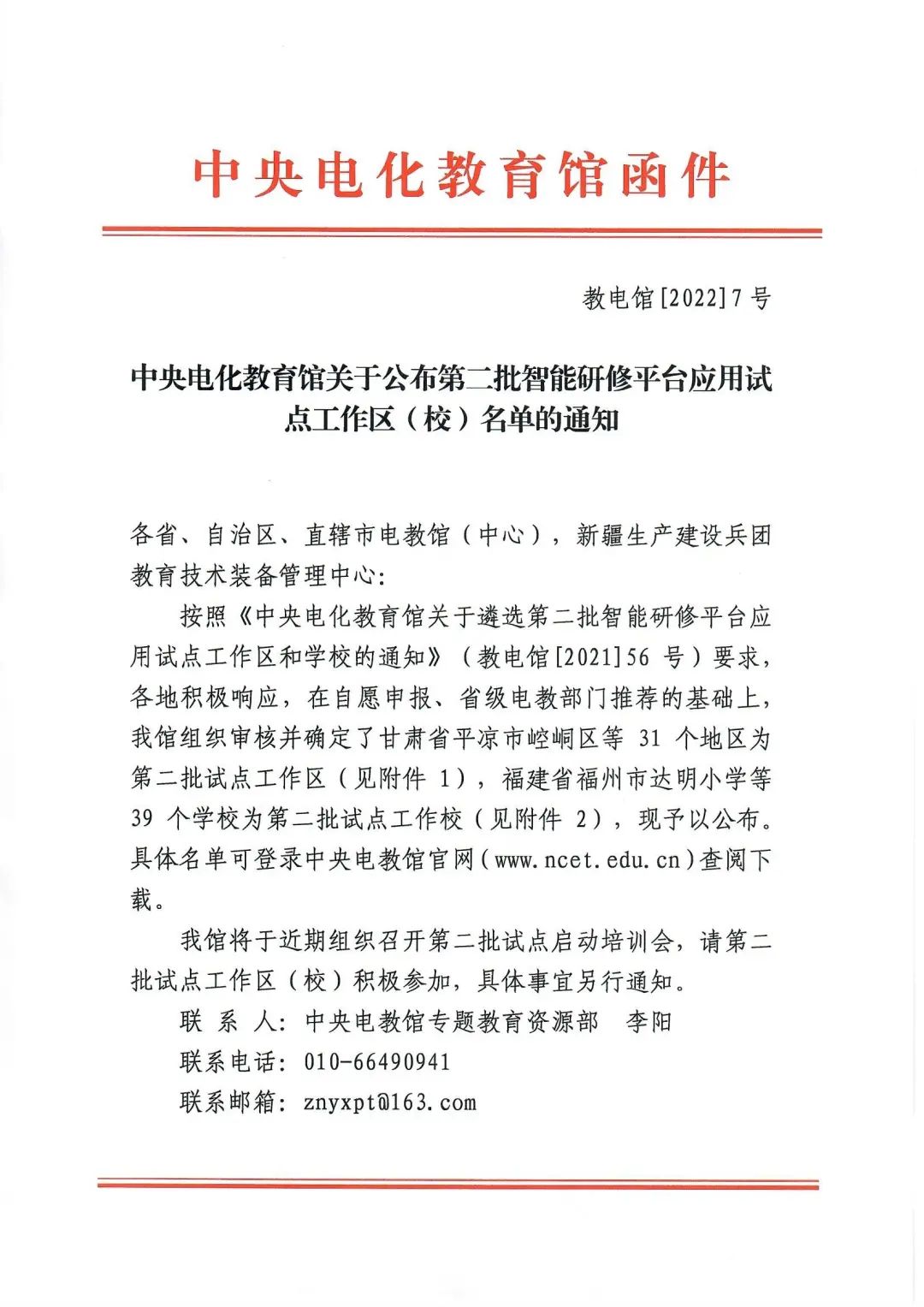 中央電化教育館關(guān)于公布第二批智能研修平臺應用試點工作區(qū)(校)名單的通知