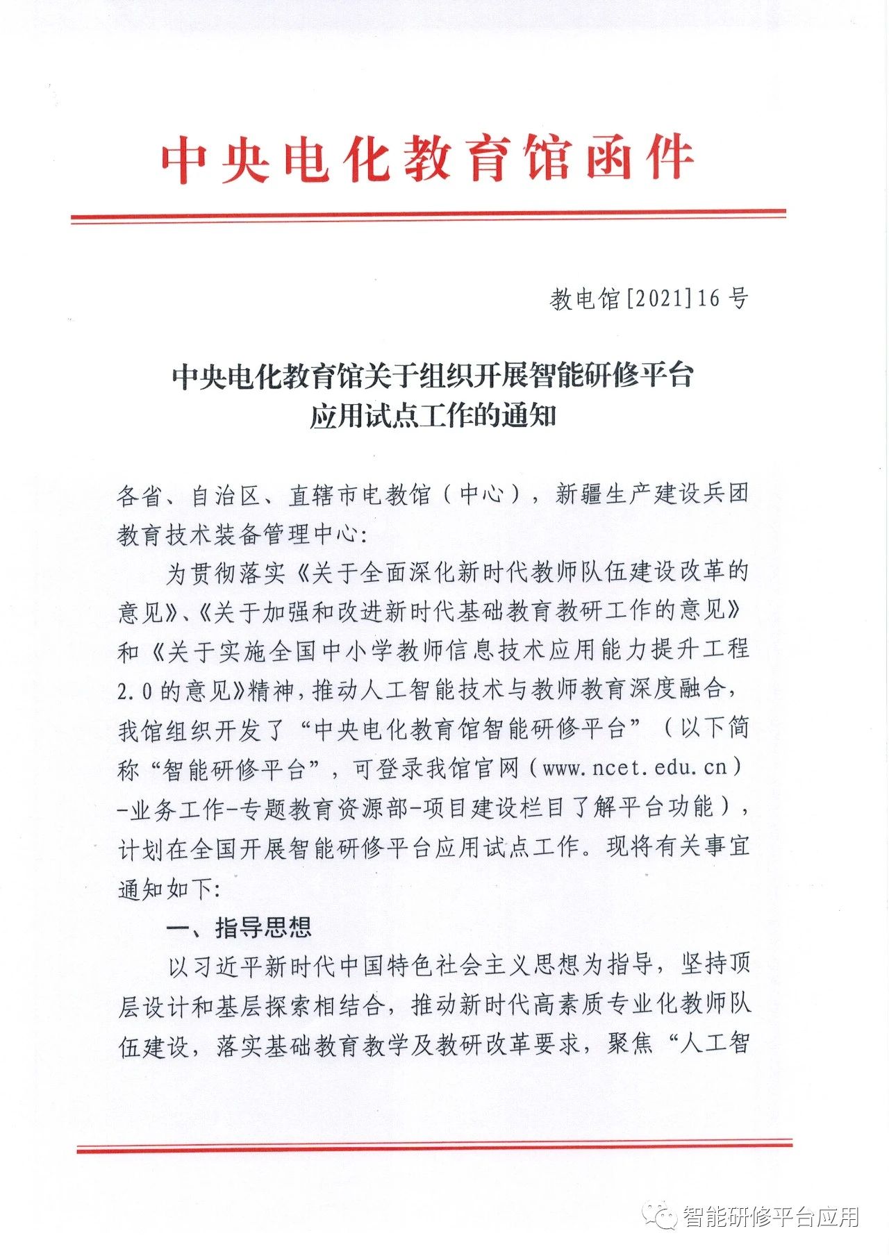 中央電化教育館關(guān)于組織開展智能研修平臺應(yīng)用試點工作的通知