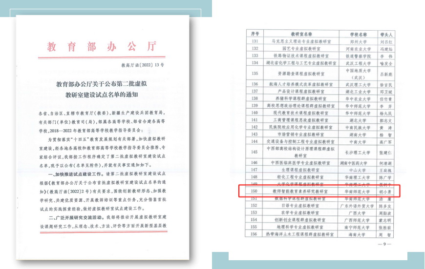 內(nèi)容:2022年5月19日,教育部辦公廳印發(fā)了《關(guān)于公布第二批虛擬教研室建設(shè)試點(diǎn)名單的通知》,公布了218個(gè)虛擬教研室名單。文件要求圍繞創(chuàng)新教研形態(tài)、加強(qiáng)教學(xué)研究、共建優(yōu)質(zhì)資源,開(kāi)展教師培訓(xùn)等重點(diǎn)任務(wù)。由華南師范大學(xué)胡小勇教授團(tuán)隊(duì)牽頭的“教師智能教育素養(yǎng)研究教研室”成功入圍。