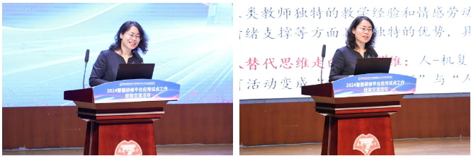 呼和浩特市教育教學(xué)研究中心鄭植副主任,在報告《呼和浩特市智能研修平臺應(yīng)用——探尋工具理性與價值理性的交匯點》中分享了呼和浩特市教育局正式入選教育部教育技術(shù)與資源發(fā)展中心(中央電化教育館)第三批智能研修平臺應(yīng)用試點工作區(qū)后的推廣應(yīng)用經(jīng)驗。呼和浩特市教育局在專家引領(lǐng)、行政推動、企業(yè)助力三方推動下,構(gòu)建“數(shù)字轉(zhuǎn)型、智能升級、融合創(chuàng)新、高效協(xié)同、資源匯聚”的智慧教學(xué)教研工作新格局。為在市域范圍內(nèi)順利推進智能研修平臺應(yīng)用,呼和浩特市提出了平臺應(yīng)用推廣的“阻力模型”,指出推進平臺運用的根本阻力在于外在技術(shù)變革介入傳統(tǒng)教學(xué)活動中引發(fā)了教學(xué)和教研方式的“范式轉(zhuǎn)換”。據(jù)此,呼和浩特市堅持“數(shù)字向善”,強調(diào)教師的主體地位與AI的工具地位不可顛倒,始終關(guān)注教師的需求和感受,尊重教師的主體地位和專業(yè)權(quán)力,同時充分發(fā)揮AI等技術(shù)的優(yōu)勢,使教學(xué)活動順利渡過范式轉(zhuǎn)換的陣痛期,實現(xiàn)工具理性與價值理性的有機統(tǒng)一。