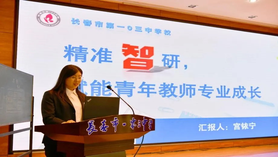 長(zhǎng)春市第一〇三中學(xué)校黨總書(shū)記、校長(zhǎng)袁波做智能研修階段成果匯報(bào)。