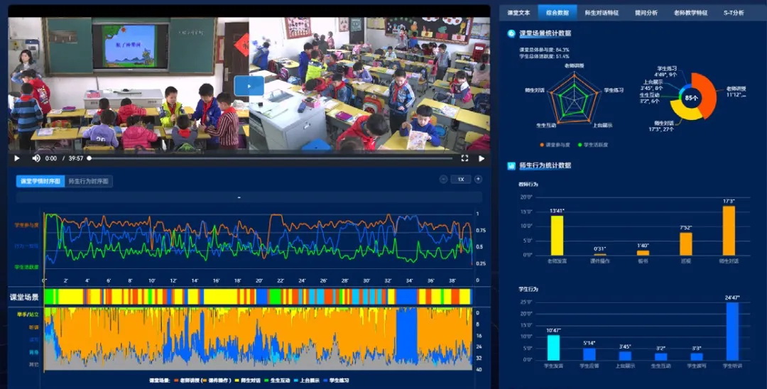 通過(guò)不同維度的數(shù)據(jù)分析,老師可以深度開(kāi)展課堂教學(xué)的精準(zhǔn)問(wèn)題診斷,例如:可以準(zhǔn)確了解課堂授課類型;可以通過(guò)學(xué)生的學(xué)情曲線精準(zhǔn)診斷課堂環(huán)節(jié)的執(zhí)行效果;通過(guò)課堂教學(xué)行為時(shí)序圖,點(diǎn)擊時(shí)序節(jié)點(diǎn)定位堂視頻以“回顧課堂實(shí)錄+智能分析”的方式開(kāi)展有效教學(xué)反思等等。