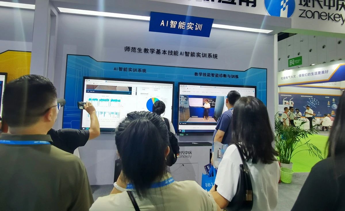 數(shù)字引航,人工智能時(shí)代,數(shù)字化是引領(lǐng)教育轉(zhuǎn)型升級(jí)的重要方式?,F(xiàn)代中慶對(duì)數(shù)字化的理解已經(jīng)由單點(diǎn)的試用上升到全面的數(shù)據(jù)應(yīng)用普及,本屆展會(huì)中,現(xiàn)代中慶提出“讓AI走進(jìn)每間教室”的口號(hào),展示了基于全面數(shù)據(jù)的AI課堂診斷、AI精準(zhǔn)教研、AI巡課督導(dǎo)、AI職初實(shí)訓(xùn)等重磅AI應(yīng)用。
