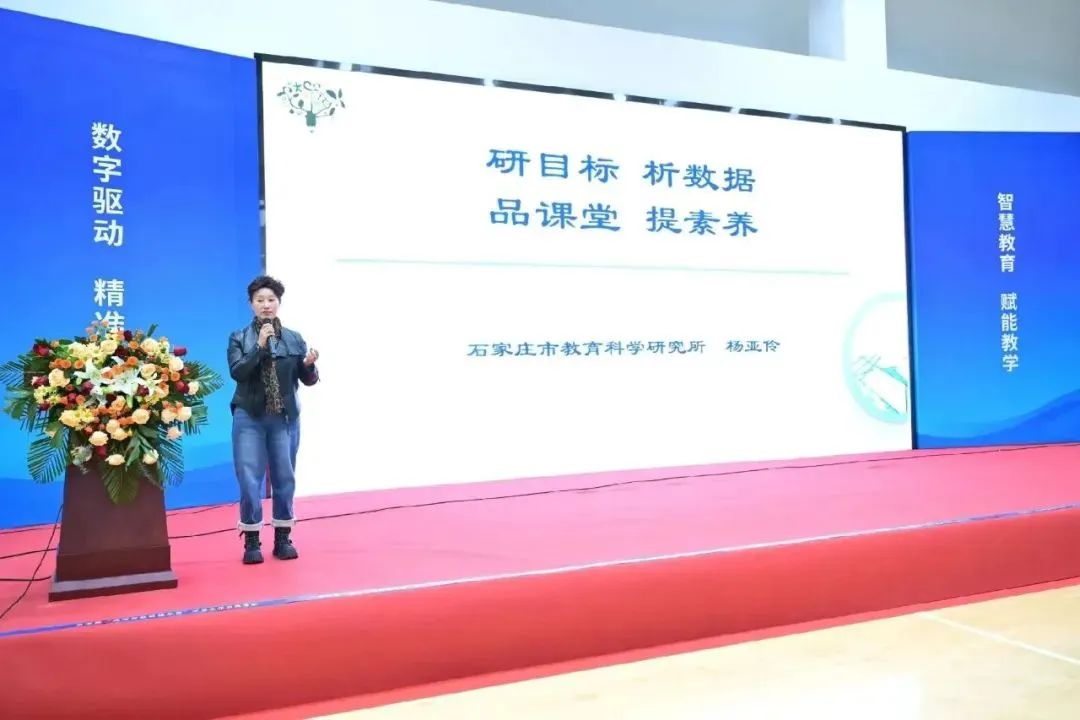 石家莊教科所楊亞伶主任結合現(xiàn)場課例展示,基于央館智能研修平臺做課例數(shù)據(jù)解讀和專家報告。楊亞伶從數(shù)據(jù)角度破譯課堂,對教學目標的設定與達成進行了觀察分析,并依托數(shù)據(jù)對教學進行實證診斷,結合教學關鍵事件為教學過程提出了有針對性的改進建議,引領大家在人機數(shù)據(jù)結合下進行精準創(chuàng)新教研。