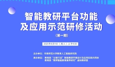 8月9日上午,華南師范大學(xué)教育人工智能研究院主持的教育部“‘眾智行遠(yuǎn)’智能教研環(huán)境設(shè)計(jì)及應(yīng)用實(shí)踐共同體”和教育部“教師智能教育素養(yǎng)研究”虛擬教研室共同啟動(dòng)“智能教研平臺(tái)功能及應(yīng)用示范”主題研討活動(dòng)(第一期)。 本期主題研... -