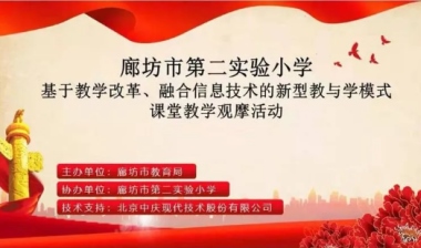 近日,廊坊市教育局組織召開了“基于教學改革、融合信息技術(shù)的新型教與學模式”課堂教學觀摩研討會,現(xiàn)代中慶為會議提供了全程技術(shù)支持。 -