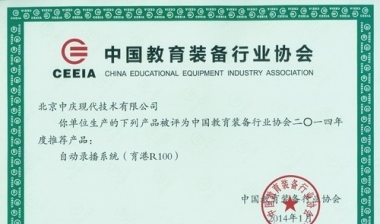 近日,中國教育裝備行業(yè)協(xié)會正式公布2014年度教育裝備產(chǎn)品推薦名單,現(xiàn)代中慶全自動錄播系統(tǒng)獲得協(xié)會推薦,成為推薦名單中唯一入選的錄播品牌。 -