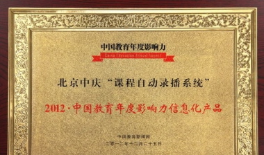 2012年11月,第七屆國際發(fā)明展覽會暨國際教學(xué)新儀器和新設(shè)備展覽會在江蘇省昆山市落下帷幕,北京中慶現(xiàn)代技術(shù)有限公司申報的“課程自動錄播系統(tǒng)”經(jīng)過大會專家組評定,榮膺“國際發(fā)明展覽會金獎”。 -