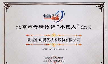 現(xiàn)代中慶在獲得北京市“專精特新”中小企業(yè)稱號(hào)后,再度榮膺專精特新“小巨人”企業(yè)稱號(hào)。 -